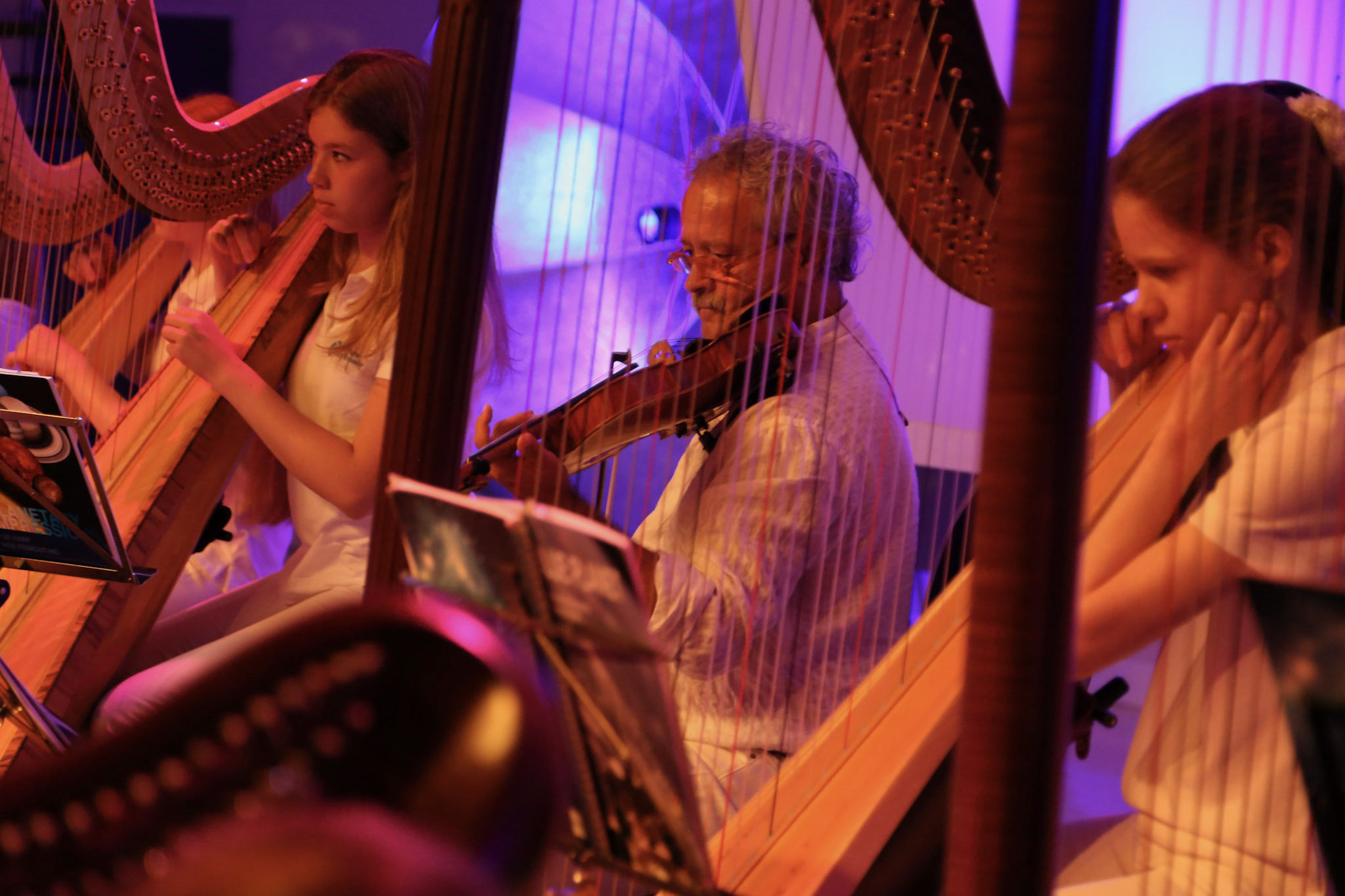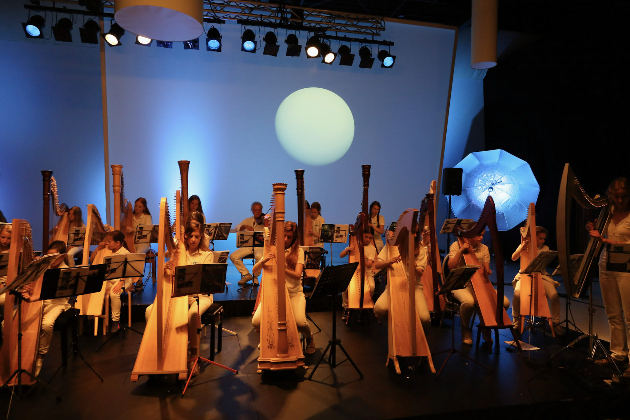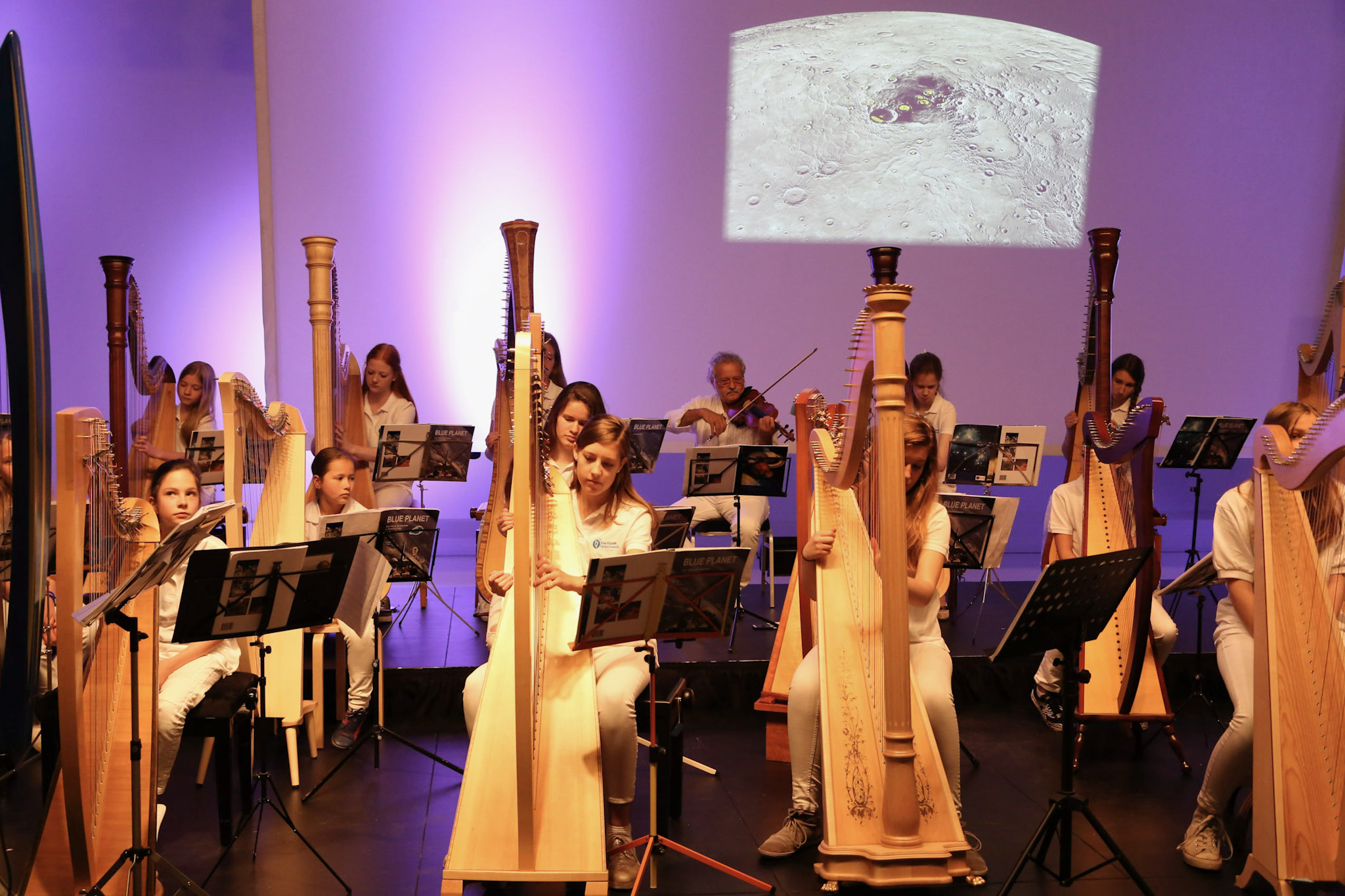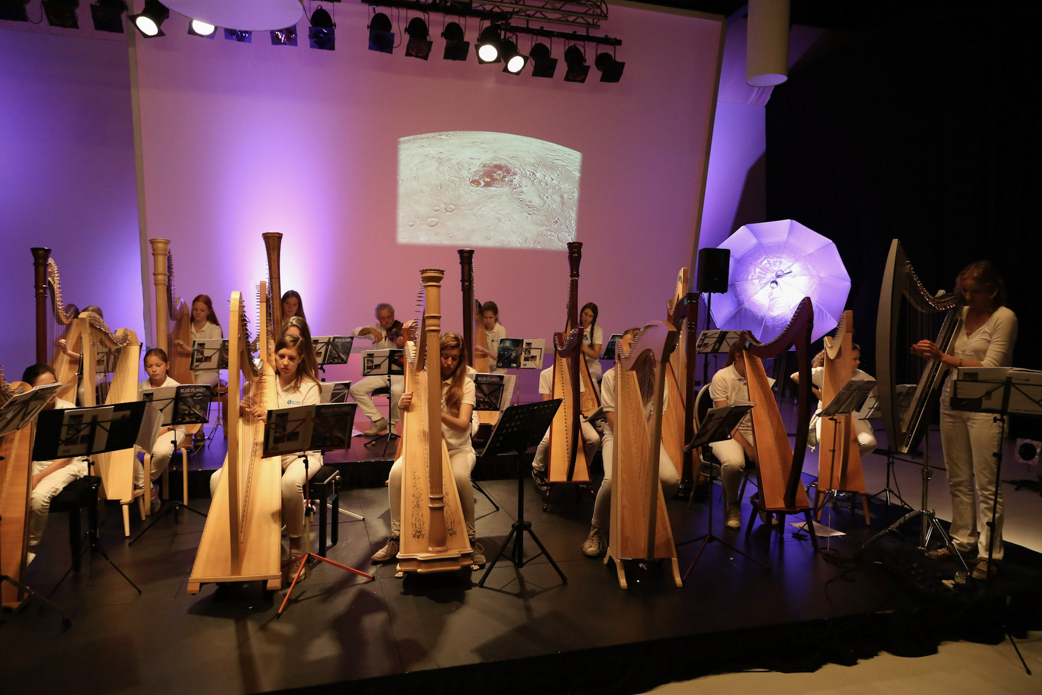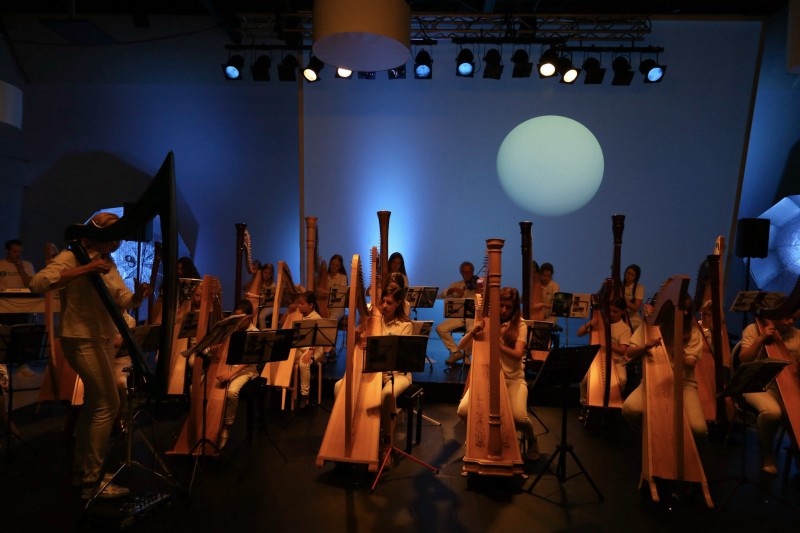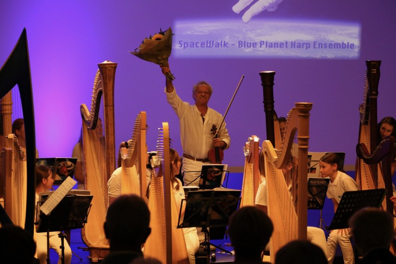 Op ruimtereis met het Blue Planet Harp Ensemble. Astronaut Dirk Frimout deelt zijn ervaringen met de Space-Shuttle.